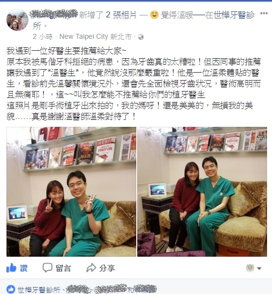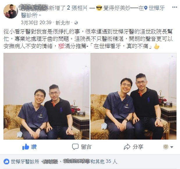 丁先生: 全然不一樣的看牙經驗!全家都是世樺忠實客戶!