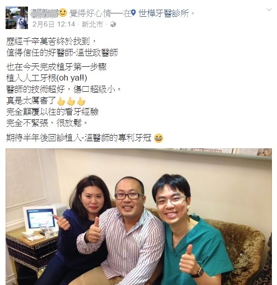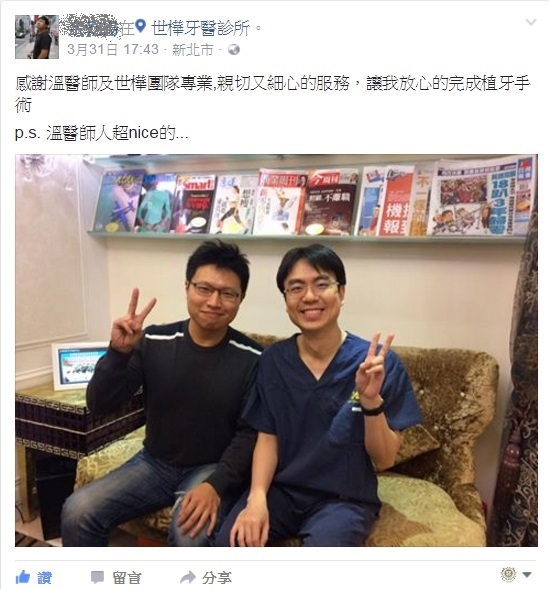 黄先生: 全國植牙權威醫師,温世政!讚啦!