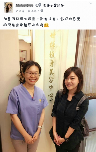 陳小姐: 找植牙診所時吃了一番苦頭,幸好介紹了温醫師,過程一切舒服!
