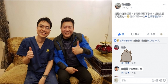 許先生: 超棒的植牙經驗!手術過程都不會痛!